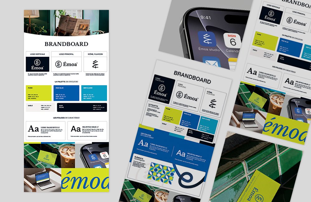 Faire appel à moi (Emoa studio), c’est la garantie d’une cohérence sur tous vos supports. Je veille à ce que votre logo, vos couleurs, vos typographies et tous vos éléments graphiques forment un ensemble harmonieux. Cette unité est essentielle pour que l’on vous reconnaisse facilement et que l’on vous fasse confiance (reconnaissance de marque). De plus, je reste toujours informée des dernières tendances. Je vous donne des conseils clairs et adaptés à votre marché et vos objectifs, pour que votre identité visuelle soit non seulement belle, mais surtout efficace et durable.